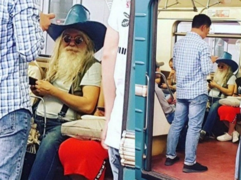 A grandpa with great style. This grandfather radiates confidence and flair, effortlessly turning heads with his impeccable fashion sense. His bold wardrobe choices and charismatic demeanor prove that true style knows no age limits. He is a reminder that the tube is not just a means of travel, but also a runway for self-expression.