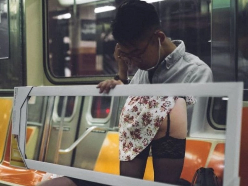 Everything was visible in the mirror. Strategically placed mirrors can reveal more than you expect. This photograph captures a moment where reflections create a scene that is both amusing and revealing, offering a fresh perspective on the daily commute.