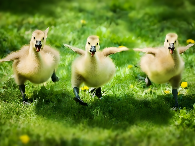 A flock of ducklings moves in perfect harmony, following their parents or older siblings with precision. This coordinated behavior helps them find food efficiently and protects them from predators. The sight of these tiny, synchronized swimmers is both heartwarming and a testament to the power of family bonds in the animal kingdom.