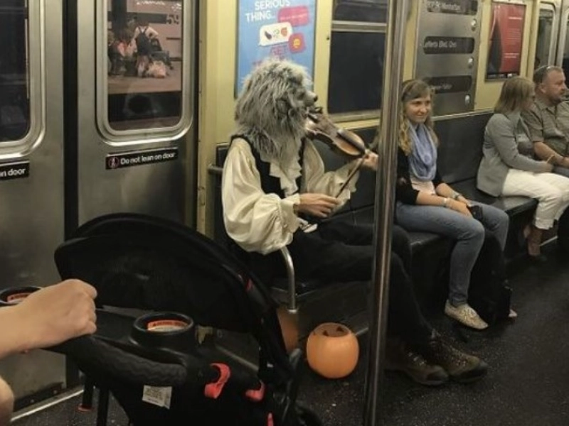 A unique fiddler, lost in their own world of music. The passion and dedication are evident, making this an inspiring moment that reminds us of the power of art to captivate and connect.