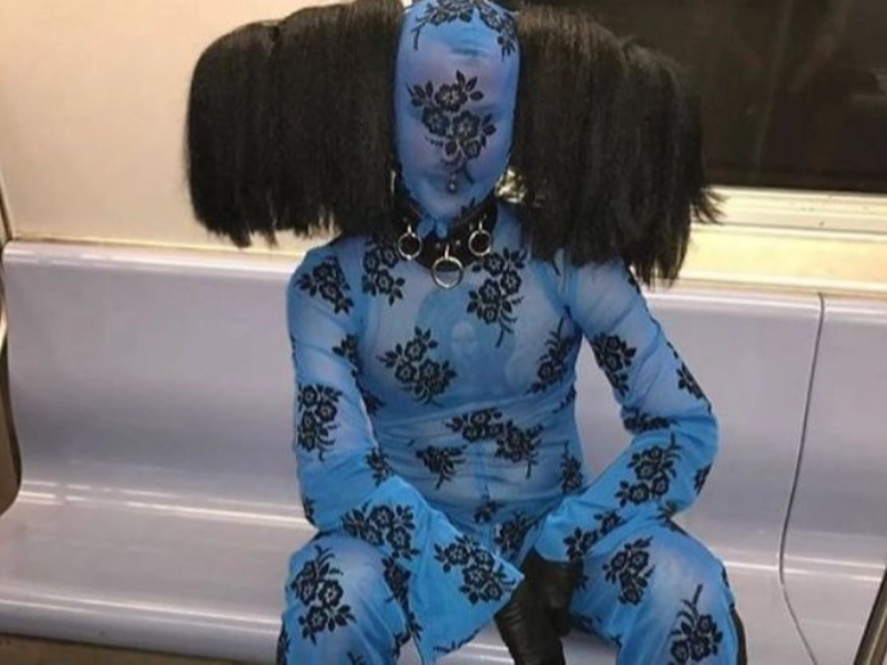 A person with an unusual haircut and blue socks. Their look is unapologetically unique, a bold statement of individuality. The combination of quirky hair and bright socks makes them stand out, showing that style is all about self-expression and confidence.