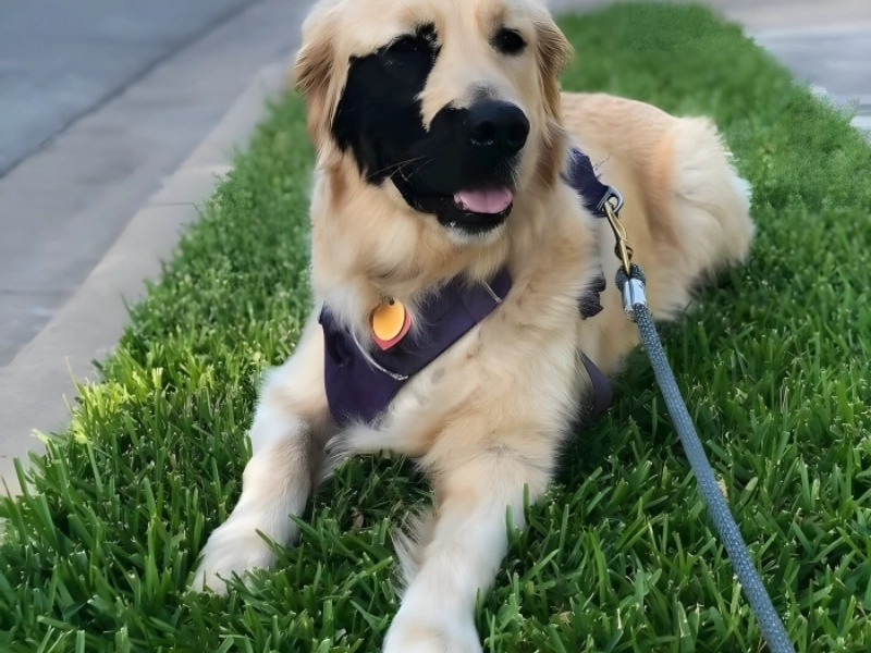 Here is a healthy Golden Retriever with a striking black patch on its face. At first glance, it might seem like a spot of ink or a large freckle. However, this rare marking is a genetic anomaly, since Golden Retrievers are usually shades of gold or brown. The bold black patch against its golden fur makes this dog truly unique. Though it may look as if someone spilled paint on him, this adorable pup’s appearance is all natural. His distinct look reminds us that every pet is special and that beauty comes in many forms. With his charming presence, he is sure to make everyone he meets smile.