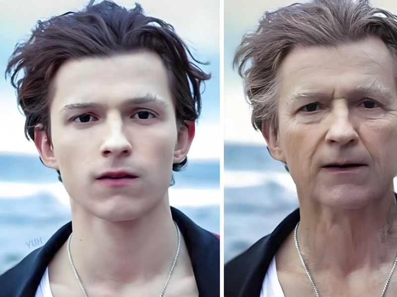 Photograph by: UnknownUtilized Technology: FaceApp In this FaceApp-generated portrait, Tom Holland, the 24-year-old English actor, is reimagined as an elderly man in his seventies or eighties. The playful aging filter offers a glimpse into what the future might hold for Holland, though his youthful charm and talent suggest he will remain a prominent figure in Hollywood for many years to come. Best known for his portrayal of Spider-Man in the Marvel Cinematic Universe (MCU), Holland has captured the hearts of fans worldwide with his charisma and dedication to the role. His rising stardom ensures that he will continue to be a key player in the entertainment industry.