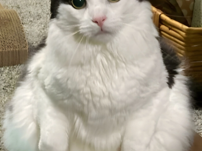 This adorable cat knows exactly how to melt hearts, tucking its tiny paws close to its fluffy body for maximum cuteness. Whether it’s posing for the camera or just seeking attention, this look is irresistible.